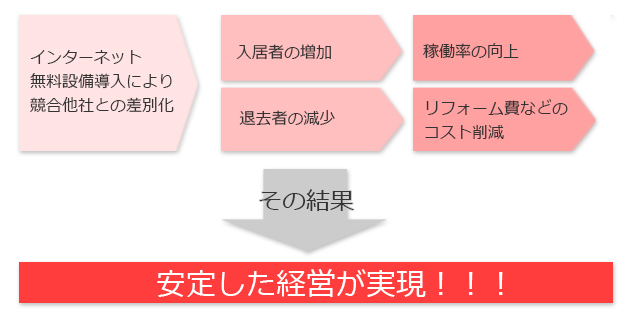つながります。退去者が減少すると、退去時のリフォーム費やその後の集客のための宣伝費